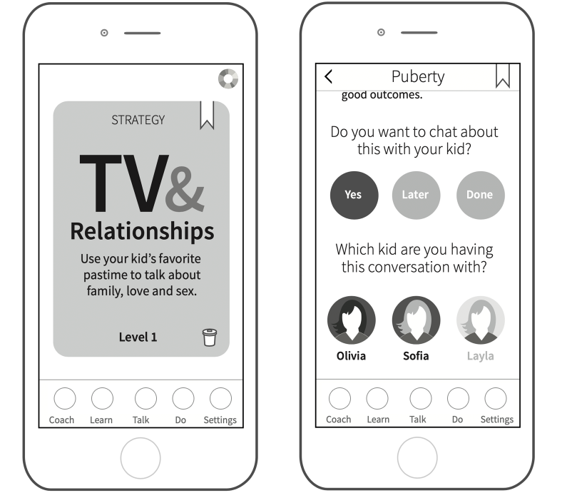 Birdie is a sex education app created by Planned Parenthood, a non-profit organization that provides reproductive health care in the United States. The Birdie app – the product of extensive user research and interviews with health educators and psychologists – provides parents with guidance, coaching, information, activities, and reminders: everything they need to talk to their kids about the birds and the bees (hence the name and the iconography theme).